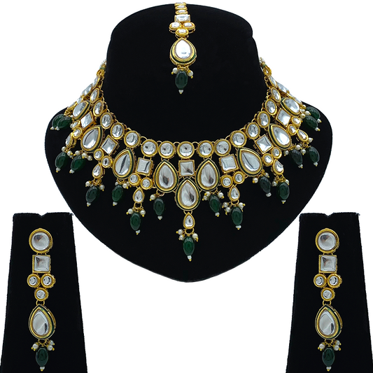 Sujwel Gold-Plated Kundan Necklace Set with Earrings, and Tikka for Girls and Women (08-0527)