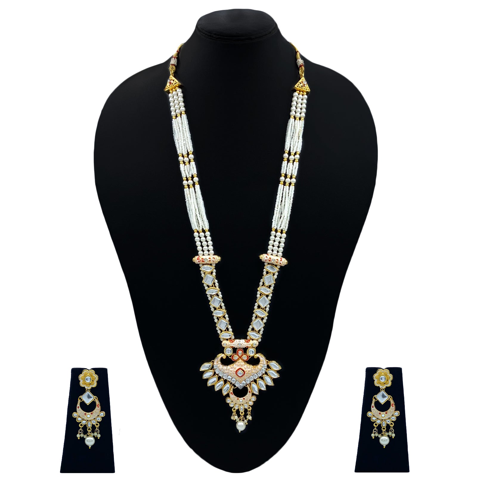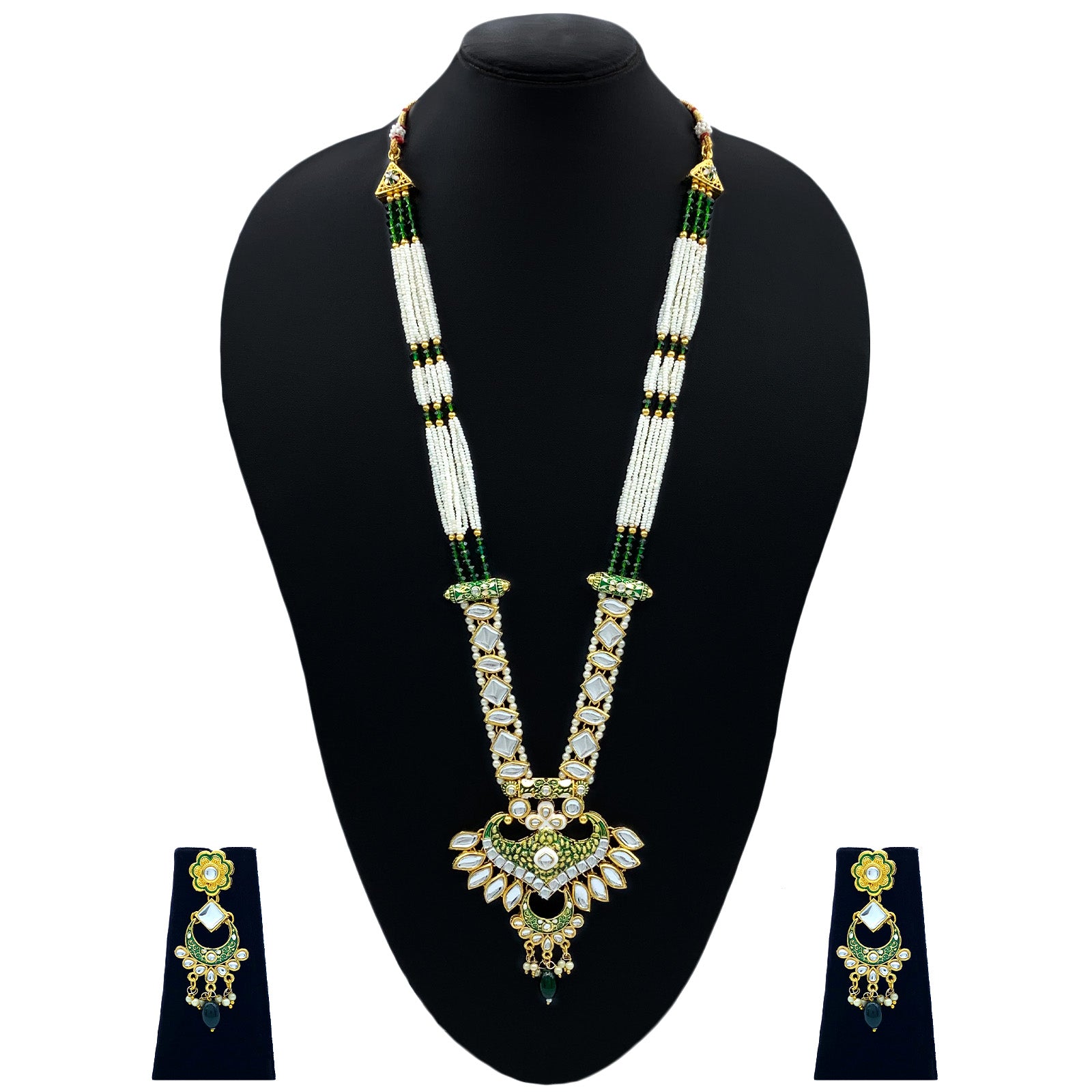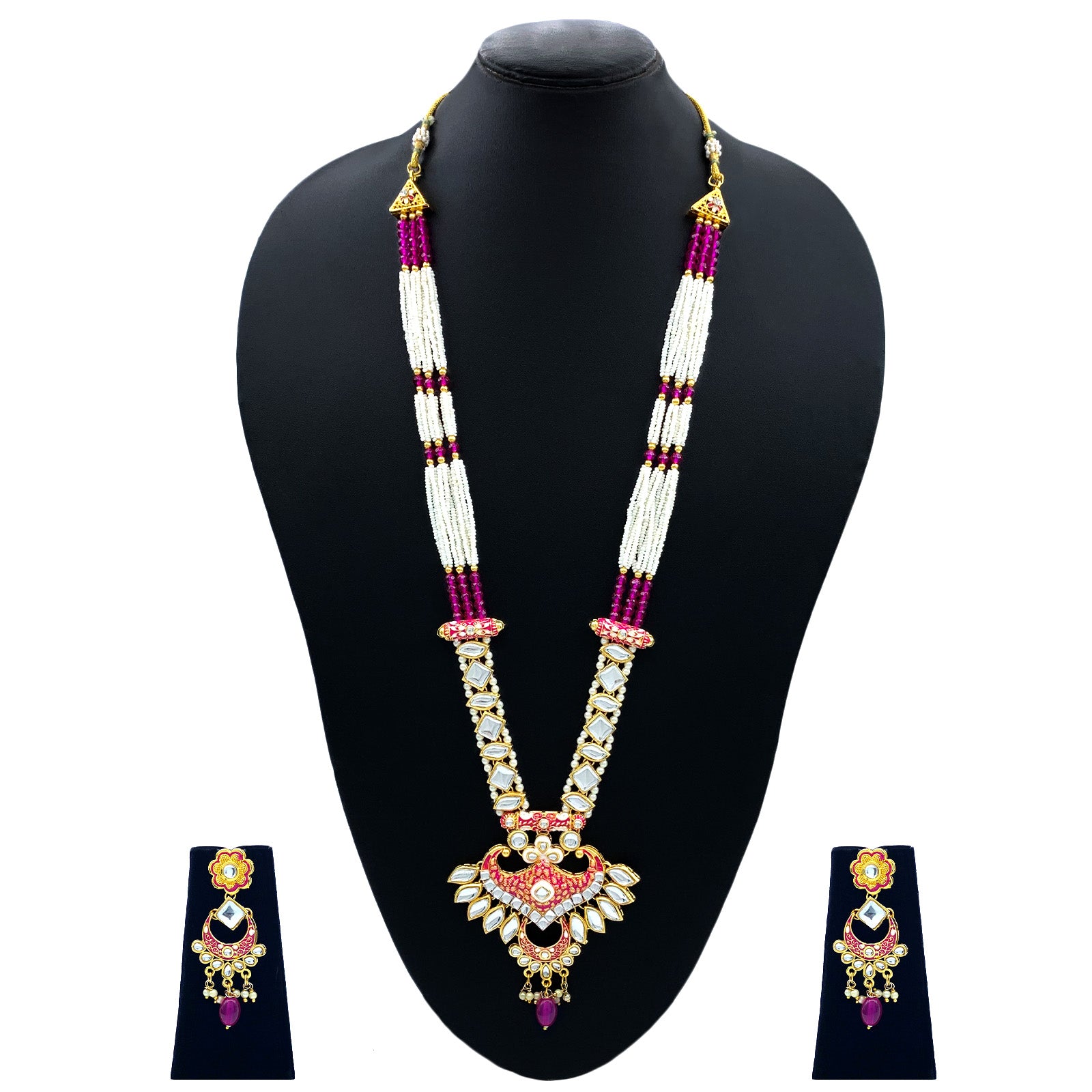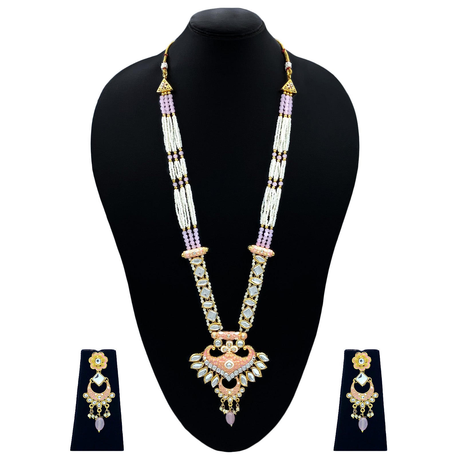 Sujwel Gold Kundan Meenakari Long Necklace And Earrings (08-0536)