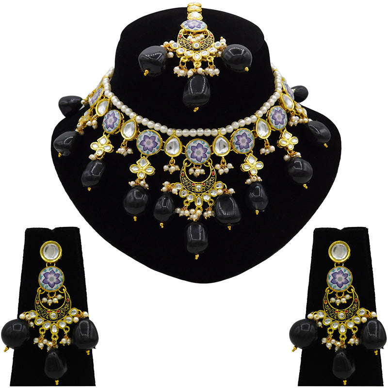 Sujwel Kundan and Meenakari with Floral Chokar Necklace Set (08-0453)