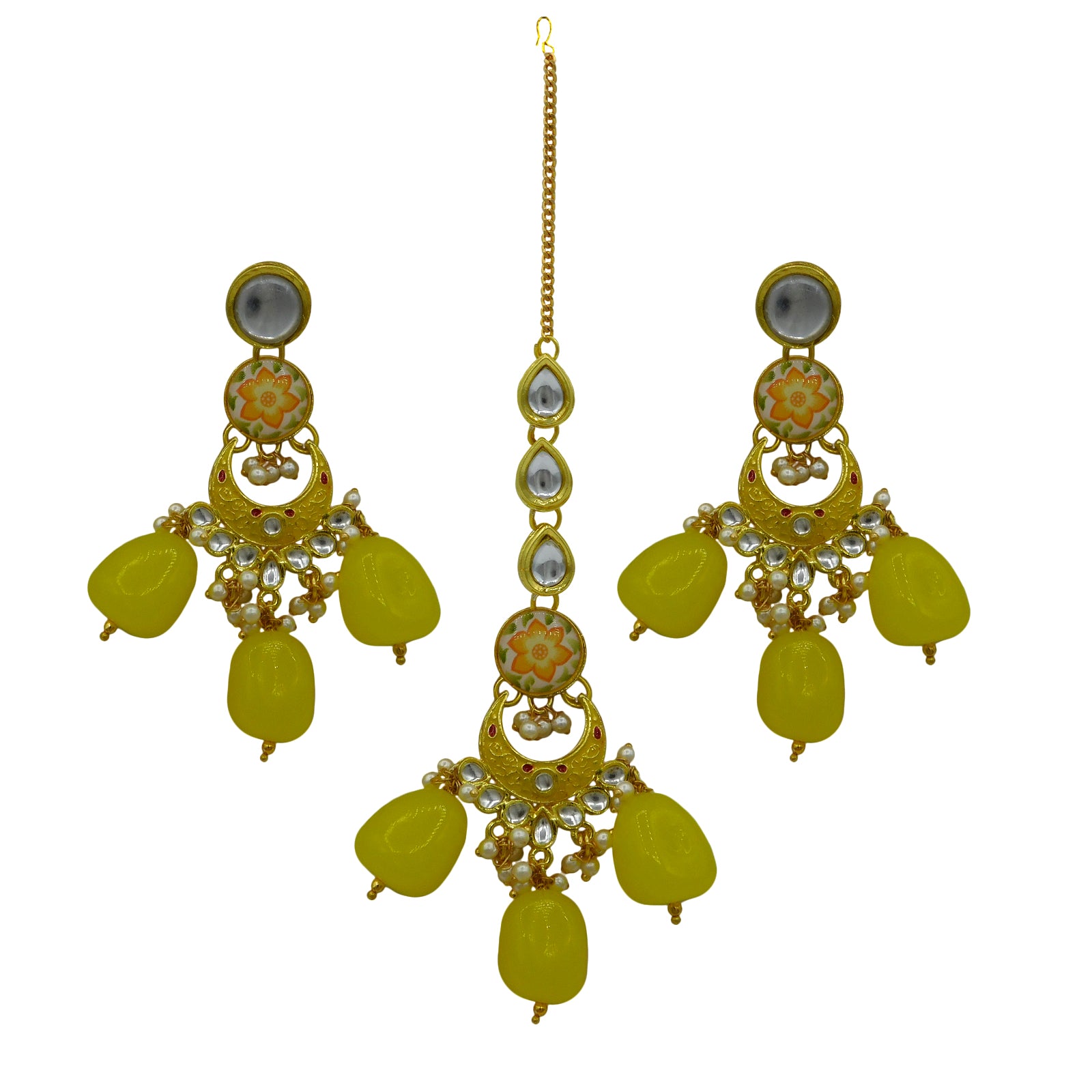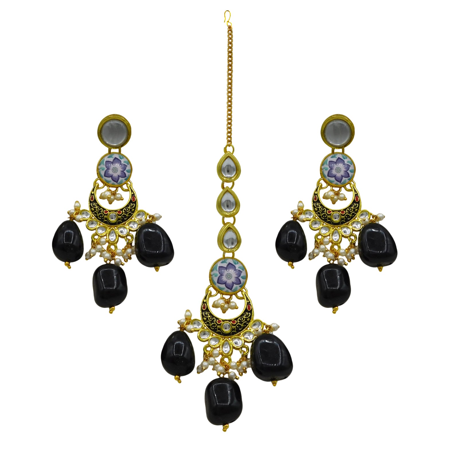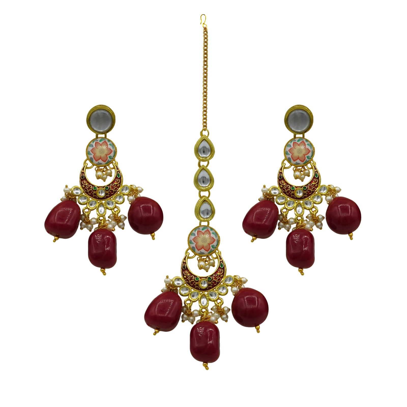 - OTHER FEATURES : It features a high-quality imitation Kundan & Lamination Stone, which defines it from other earrings and maang tikka. This is a one-of-a-kind trend that will match any style of dress.