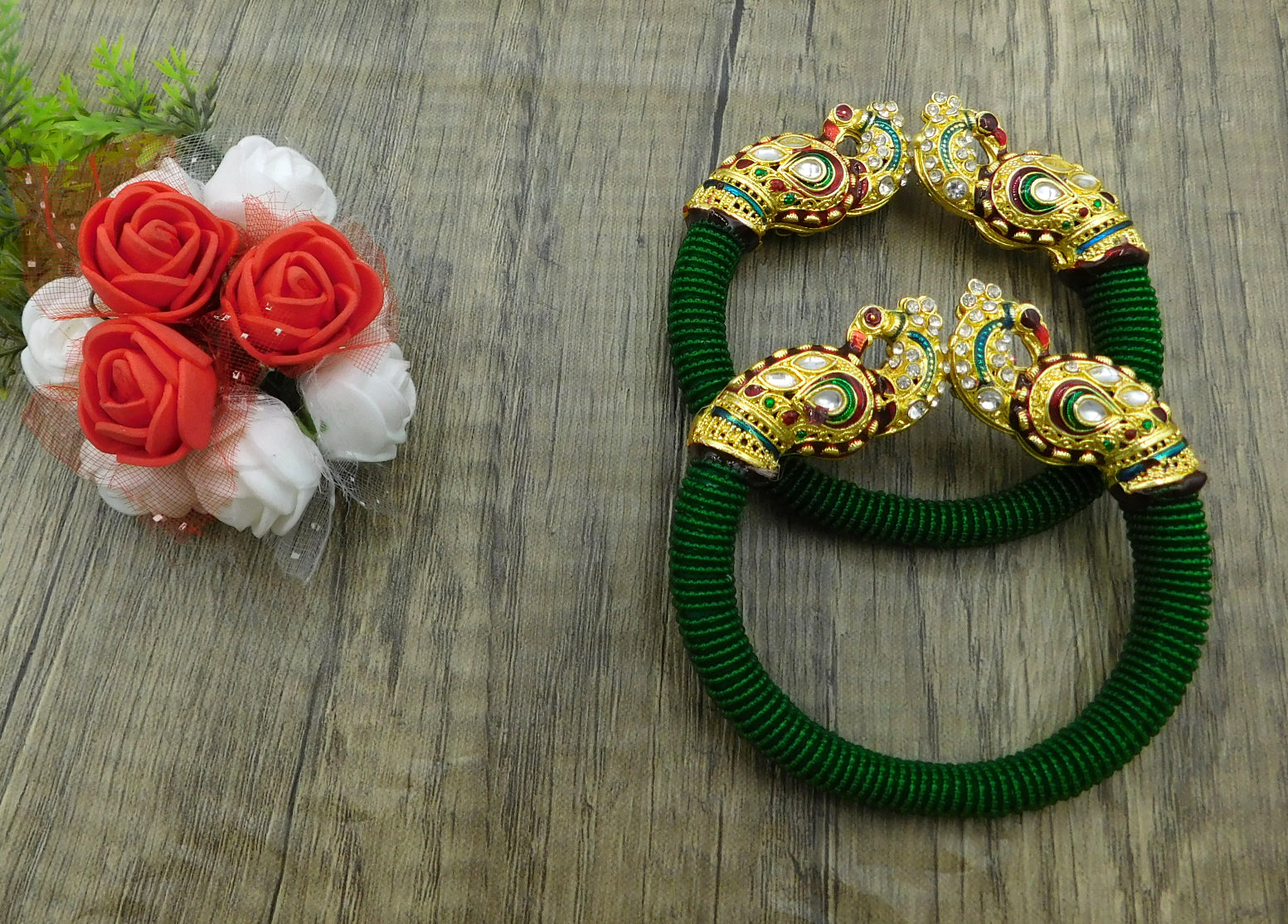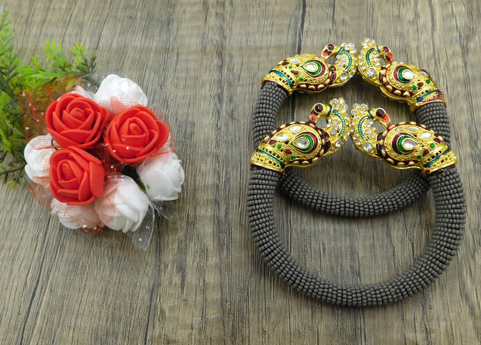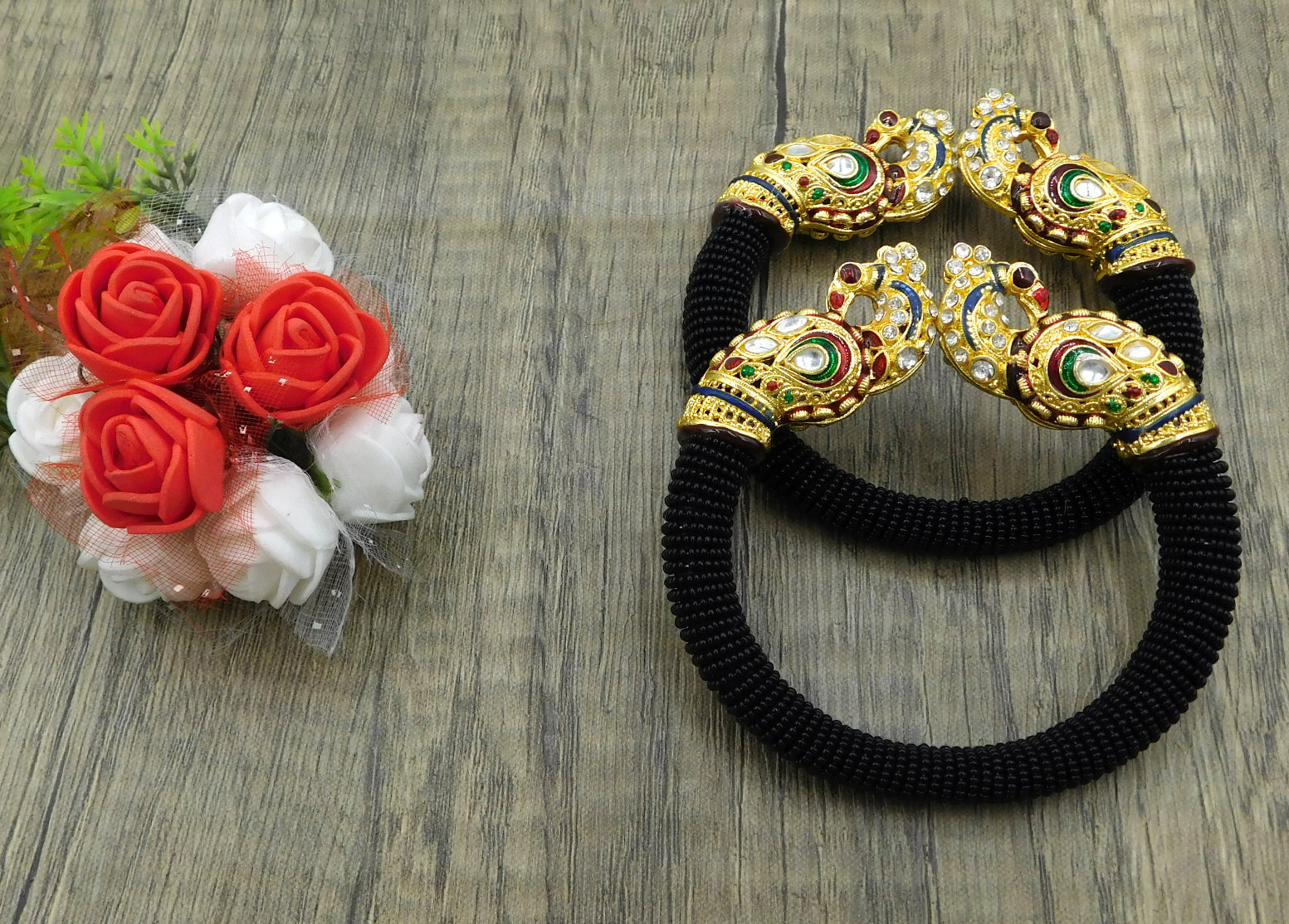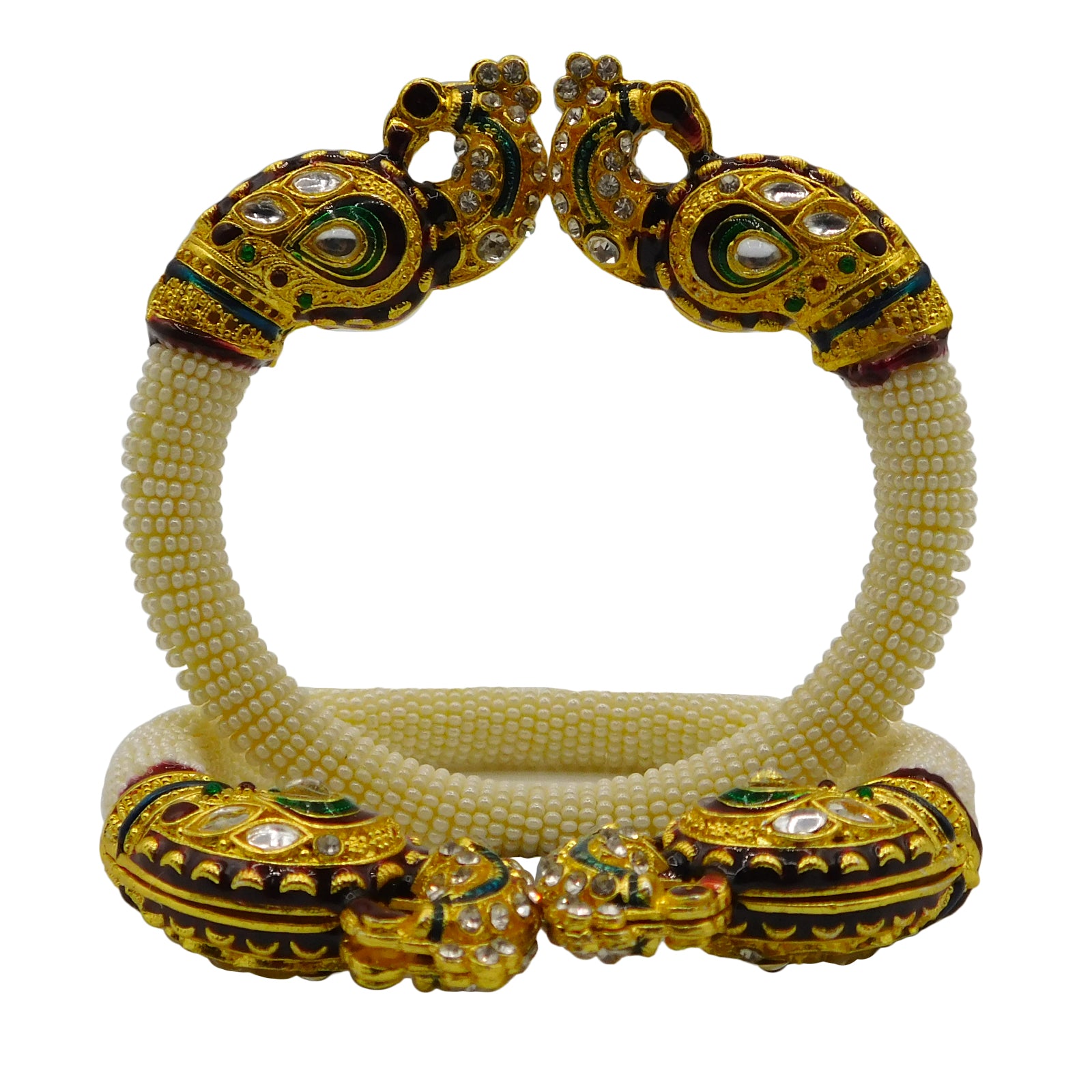 Sujwel Resin, Pearl & Gold-Plated Gold Plated Cubic Zirconia Bangles for Women & Girl's (Pack of 2) (10-141)