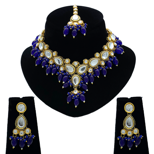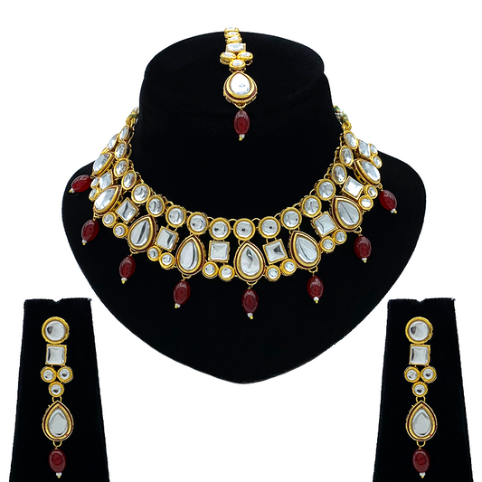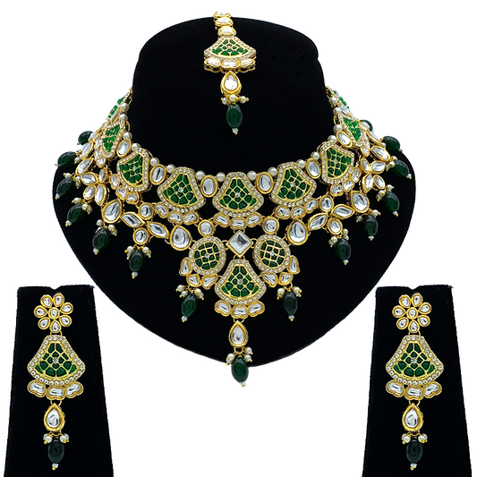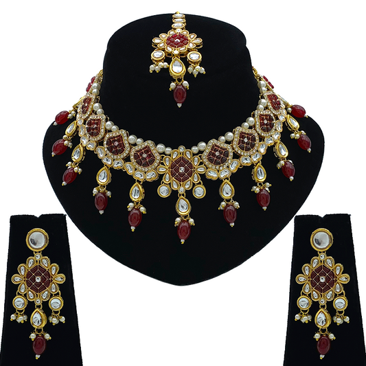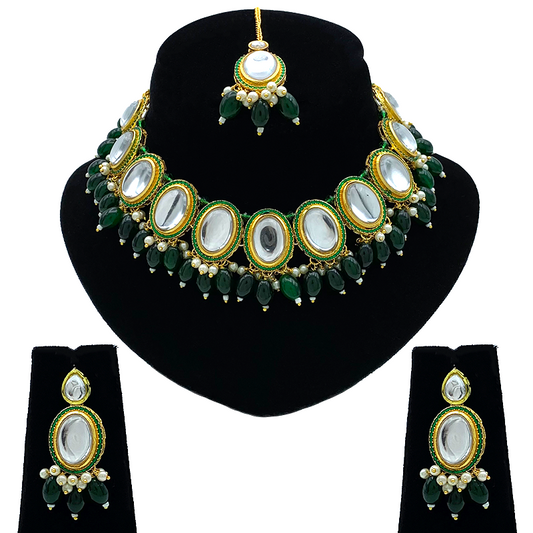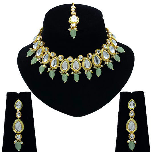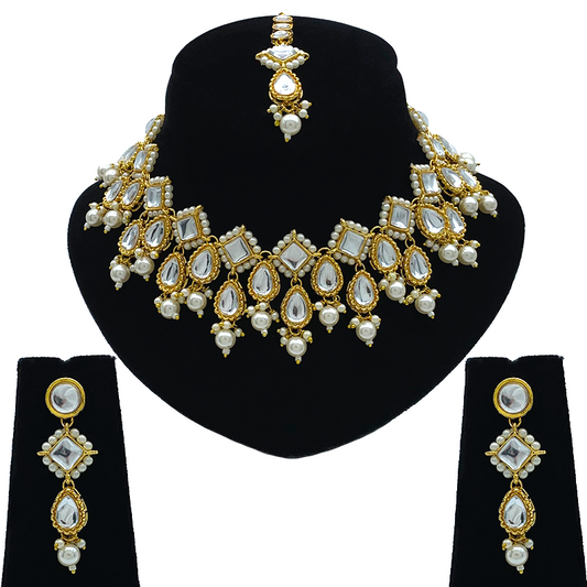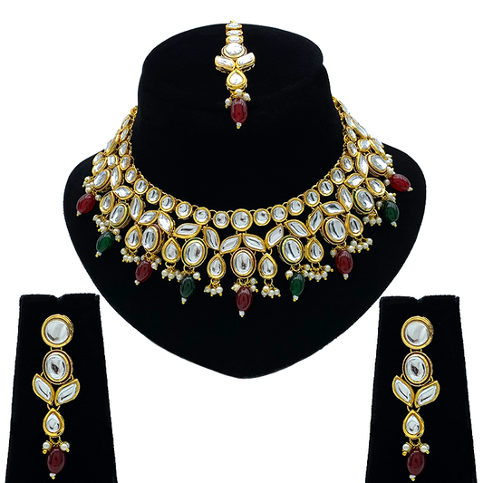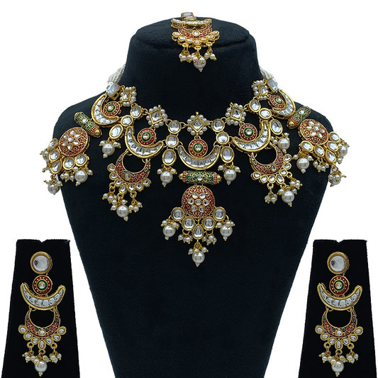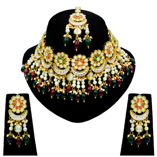 Sujwel Gold-Plated Kundan Necklace Set with Earrings, and Tikka for Girls and Women (08-0527)